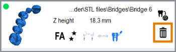 Die Einträge auf der Importliste bleiben dort, bis Sie sie zu einem Rohling hinzufügen oder manuell löschen. Deshalb können Sie jederzeit das Rohlingsarchiv öffnen, einen anderen Rohling wählen und zurück zur STL-Import-Ansicht wechseln, ohne die Einträge auf der Importliste zu verlieren.