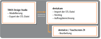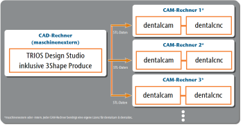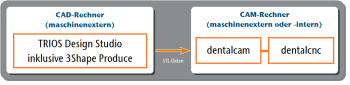 3Shape Produce ermöglicht den standardisierten Datenaustausch zwischen TRIOS Design Studio und dentalcam.