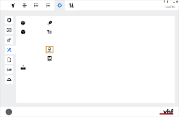 Öffnen Sie die dentalcnc-Programmeinstellungen mit dem folgenden Symbol in der Hauptsymbolleiste: