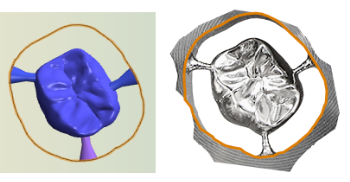 Für einige Bearbeitungsschritte möchten Sie den Rohling vielleicht ausblenden. Hinzu kommt, dass dentalcam den Rohling für bestimmte Bearbeitungsschritte automatisch ausblendet. In diesen Fällen möchten Sie den Rohling vielleicht manuell einblenden, wenn es Ihnen beim Bearbeiten der Arbeit hilft.