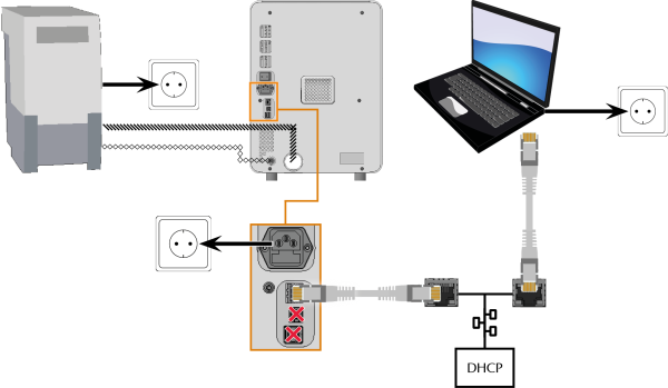 Der Rechner, der mit Ihrer Maschine verbunden ist und auf dem dentalcam und dentalcnc laufen. muss ebenfalls an dieses Netzwerk angeschlossen sein. -