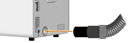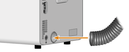 - Führen Sie den Schlauchanschluss in die Öffnung für die Absauganlage an der Maschine ein. Stellen Sie sicher, dass er fest angeschlossen ist.