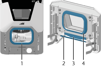 Reinigen Sie die Dichtlippe, die Auflagefläche und den Rahmen des Sichtfensters gründlich mit dem feuchten Tuch. Verwenden Sie bei Bedarf einen milden Reiniger.