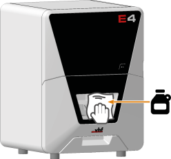 Reinigen Sie den Rohlingshalter von allen Seiten mit einem feuchten Pinsel. Reinigen Sie vor allem die Öffnung des Rohlingshalters.