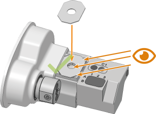 Die Messtasterabdeckung muss bündig mit der darunter liegenden Fläche abschließen und darf nicht verdreht sein.