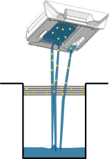 Entleeren Sie das schmutzige Wasser in den Auffangbehälter.