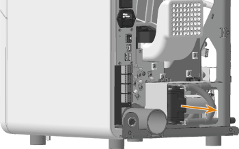 Führen Sie die Schlauchanschlüsse und das Anschlusskabel durch die seitliche Öffnung.
