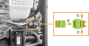 Stecken Sie das Kabel der Kühlflüssigkeitspumpe in den zugehörigen Anschluss in der Maschine.