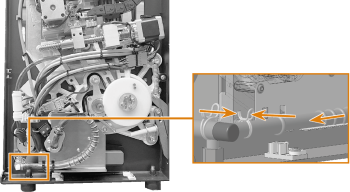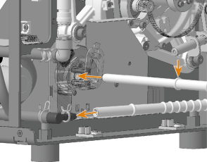 Befestigen Sie den Saugschlauch mit 4 Kabelbindern. Achten Sie darauf, dass die Verdickungen des Saugschlauchs in den Aussparungen positioniert sind.