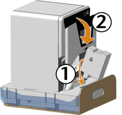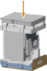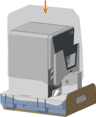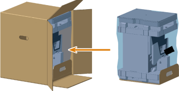 Schieben Sie die Maschine inklusive Einleger langsam in den Transportkarton.