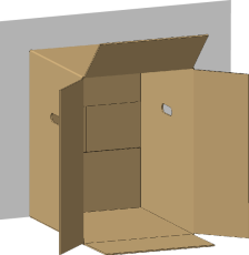 Falls die Rückseite des Transportkartons keine feste Wand berührt, lassen Sie den Karton von einer 2. Person stützen.