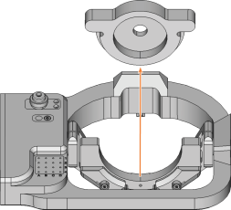 Die Spindelsicherung (orange markiert) befindet sich im Rohlingshalter.