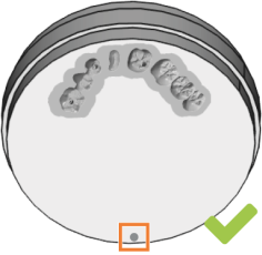 - Wenn die Ronde für das sicherere Wiedereinspannen über dentalcnc markiert wurde, stellen Sie sicher, dass sich die Markierung in der unten gezeigten Position befindet.