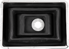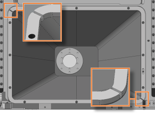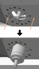 Die Löcher für die 6 Schrauben, mit denen die Faltenbalgfixierung befestigt wird, liegen auf den entsprechenden Schraubenlöchern im Faltenbalg.
