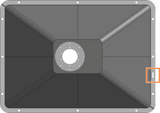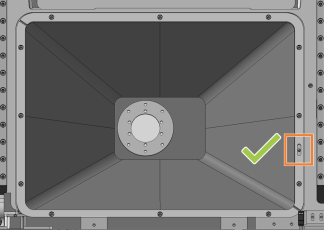 Richten Sie den Ersatz-Faltenbalg so aus, dass die Öffnung für den Positionierstift (orange markiert) im Rahmen auf der rechten Seite liegt.