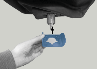 Setzen Sie den Faltenbalg in die Maschine ein. Der Positionierstift muss in der zugehörigen Öffnung im Rahmen liegen.