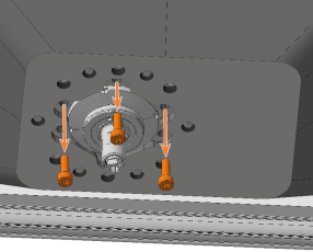 Schrauben Sie mit dem Drehmomentschraubendreher 1,5 Nm mit Bit TX20 die Faltenbalgfixierung mit 6 Schrauben fest: