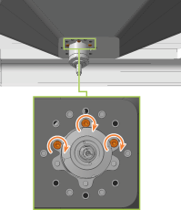 Um jede Schraube zu erreichen, bewegen Sie vorsichtig die Spindeleinheit oder die Spindelaufnahme von Hand in X- und Y-Richtung.