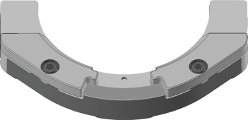 Positionieren Sie die 2 Spannvorrichtungen auf dem Rohlingshalter. Die Schraubenlöcher im Halter und in den Spannvorrichtungen müssen übereinander liegen.