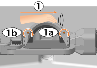 Halten Sie den Rohlingshalter fest. Drehen Sie den Rohlingshalter vorsichtig um 180 ° nach unten.