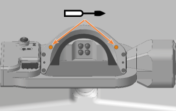 - Schrauben Sie die 2 Schrauben in die Rückseite des Rohlingshalters ein, ohne diese festzuschrauben.