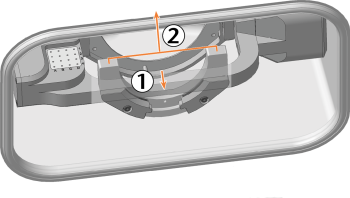 Prüfen Sie, ob der Rohlingshalter auf der rechten Seite an den Kontaktflächen des Rohlingshalterträgers anliegt.
