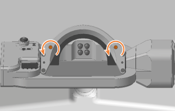 Schrauben Sie die 2 Fixierschrauben aus den 2 Spannvorrichtungen und entfernen Sie sie.
