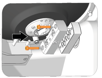- Verwenden Sie den mitgelieferten Drehmoment-Schraubendreher, um die Fixierschrauben des Rohlingshalters festzuziehen.
