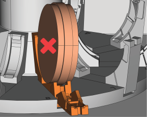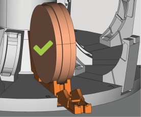 - Ronden: Wenn die Ronde für das sicherere Wiedereinspannen über dentalcnc markiert wurde, stellen Sie sicher, dass sich die Markierung in der unten gezeigten Position befindet.