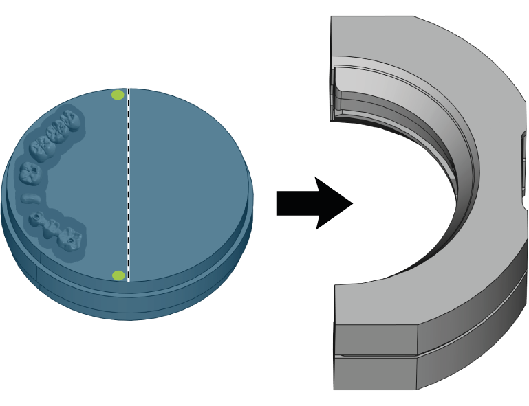 2. Öffnen Sie den Rohlingshalter, indem Sie das abgebildete Symbol in der Bearbeitungsansicht in dentalcnc wählen.