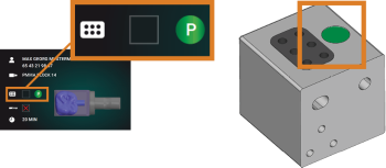 6. Auf dem Touchscreen angezeigte Farbe (links) und Kennfarbe des Werkzeugmagazins stimmen überein