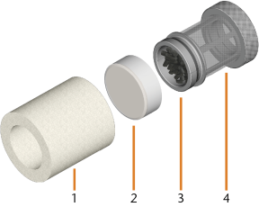 8. Positionieren Sie die Kugel im Ventilsitz und schrauben Sie die Kappe auf die Buchse der Kupplung.