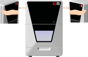 Halten Sie den Bügel in dieser Position, bis die Maschine referenziert oder die Arbeitsraumbeleuchtung rot leuchtet.