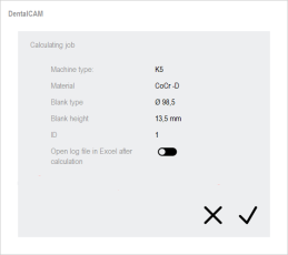 - If at least 1 object is too high for the blank, dentalcam will display a corresponding message in the window.
