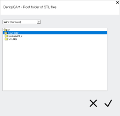 - The window closes. ChairsideCAM shows the path next to the label Root folder for STL files.