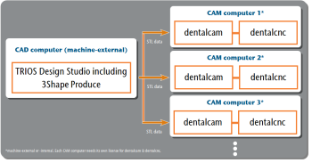 3Shape Produce enables standardized data exchange between TRIOS Design Studio and dentalcam.