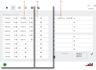 dentalcnc stores your tool stock (up to 30 tools) in the virtual Administrated Tool Board (ATB).