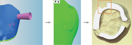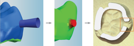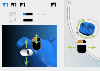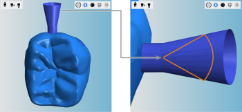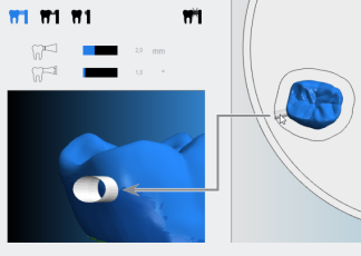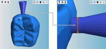 - The bar automatically snaps to the outer surface of the object. dentalcam displays the bar in the preview area in the left column.