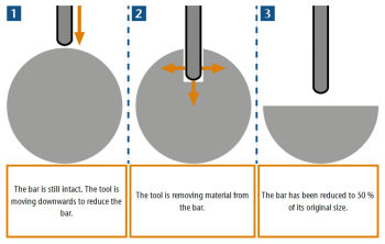 When machining softer materials, bars should usually get reduced to a lesser extent than when machining harder materials.