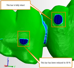 The oversize of fits often needs to be adjusted to the material because individual materials react differently to the physical forces exerted by the tool. With this parameter, you widen or narrow the individual fits to ensure that their machining is optimal for the material used. Adjusting the oversize of fits in dentalcam also means that you do not have to do this in your CAD application.
