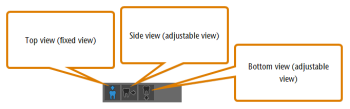 With the 3 icons in the top left corner of the 3D display, you can quickly switch between 3 standard views that you can find in almost any 3D design application.
