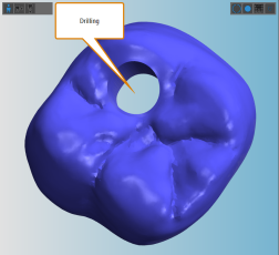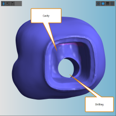 To save time when importing the object: Some implant-borne crowns have a drilling inside their cavity. A crown with a drilling in the cavity (basal and occlusal side) If you want to know how to nest this type of objects, read our Help Article on special cases. |