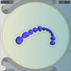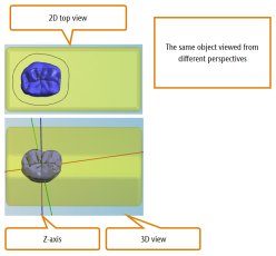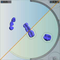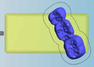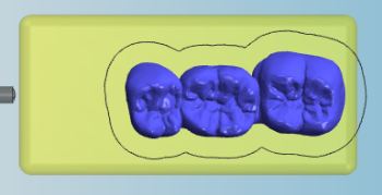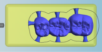 The blank display on the right hand side is identical in both nesting views. It shows you what your blank is going to look like after machining (to a certain degree at least) and it is the place where you will do the bulk of your nesting work. Knowing how to handle the blank display is key to efficiently working with dentalcam.