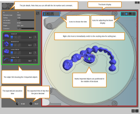 1. In the first nesting view you can adjust objects (e. g. move and rotate them), set drops, create sinter bars etc.