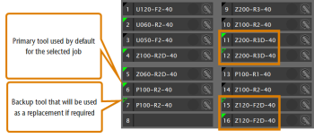 • The tools in your tool stock From the tool stock you can select the tools that are currently in the tool magazine of your machine. In addition, dentalcnc uses this list to display the remaining tool life for all your tools.