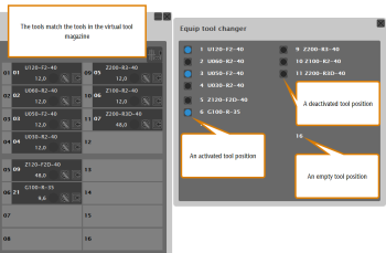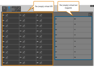 • The Tool management view displays. Upon first use, both the virtual ATB and the virtual tool magazine will be empty.