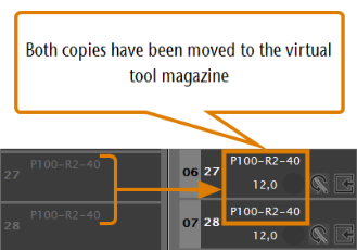 dentalcnc stores the tools that are currently in the tool magazine of your machine in the virtual tool magazine. Before machining, you will need to load the tools from the virtual ATB into the virtual tool magazine in dentalcnc, just like you would put the physical tools from the tool stock (e.g., the physical ATB) into the tool magazine in your machine.