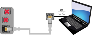 To connect through your network, plug the other end of the Ethernet cable into a port on the local network (for example, hub, switch, network jack).