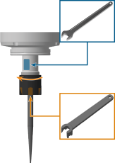 - Tighten the clamping nut clockwise with the clamping wrench. In doing so, turn the clamping nut beyond initial resistance and make sure that the clamping nut is completely tight.