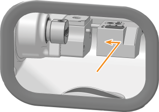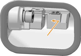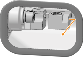 - Clean the 2 opposite openings (marked orange) in the nozzle plate with the interdental brush. Move the interdental brush up and down.